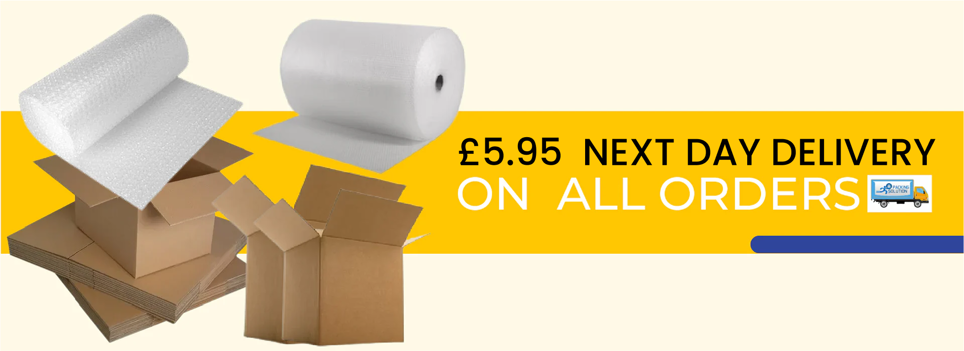 We offer both strong cardboard boxes for shipping as well as packaging accessories too, such as bubble wrap and tape and cling film too, so you can get everything that you need in one place here online at Packing Solution. Simply click on the products that you wish to add to the shopping cart, then go to checkout and enter your details for delivery and payment. We hope you enjoy your experience shopping with Packing Solution.
